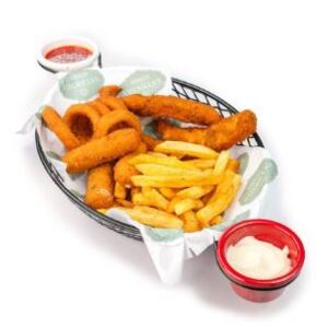 MOZZERELLA STİCK, CHİCKEN FİNGER, SOSİS, SİGARA BÖREĞİ, PARMAK PATATES, SOĞAN HALKASI MEVSİM YEŞİLLİKLERİ PATATES TAVA İLE SERVİS EDİLİR...