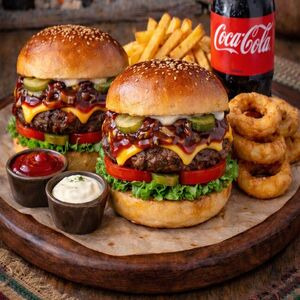 Çorba , Chesee Burger veya Warp çeşitleri ,salata ,Cola, su ,tatlı