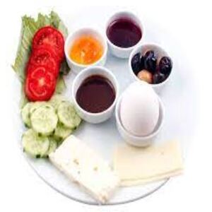 DOMATES, SALATALIK, BEYAZ PEYNİR, SİYAH-YEŞİL ZEYTİN, TAHİN-PEKMEZ, SALAMVE SİMİT İLE SERVİS EDİLİR...
