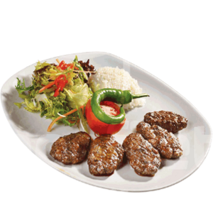 IZAGARA KASAP KÖFTESİ, PİLAV DOMATES BİBER PATATES İLE.