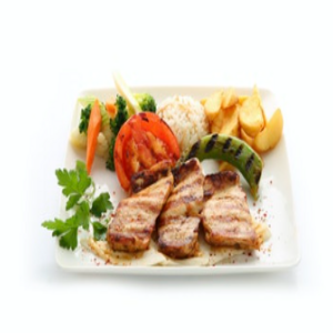 KEKİKLİ TAVUK YAPRAKLARI SOTELENMİŞ SEBZE, SOĞAN HALKASI VE PATATES İLE.