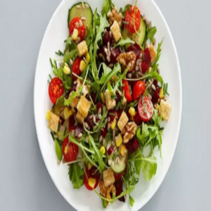 ROKA, MOR SOĞAN, CHERRY DOMATES, PARMESAN PEYNİRİ, BALZEMİKLİ NARLI LİMON SOS VE BURGAR'A ÖZEL SOS İLE.