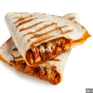 TORTİLLA EKMEĞİVARASINDA SOTELENMİŞ TAVUK ETİ, MEKSİKA FASULYESİ, JALAPENO BİBER, KAŞAR PEYNİRİ, KIRMIZI VE YEŞİL BİBER, SOĞAN, SOS, PATATES TAVA İLE.